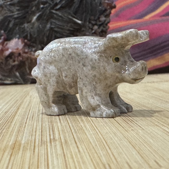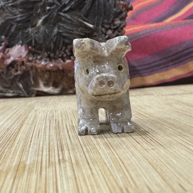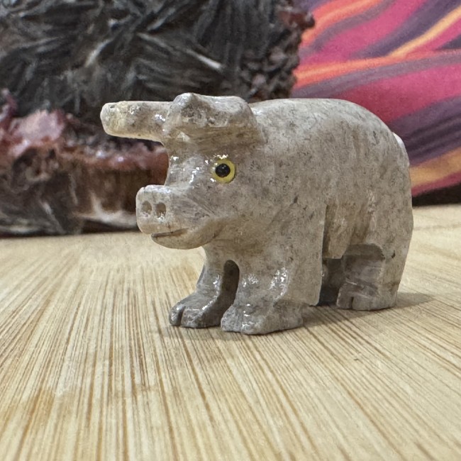 La stéatite, aussi appelée pierre à savon, a une surface douce au toucher. Elle a une teneur élevée en talc, ce qui facilite le travail pour la scier, la tailler et la sculpter.